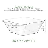 PLASTICPRO - Super convenient disposable reuable washable Elegant clear square party bowls is great for every ocassion partys events gatherings family dinners holidays throw partys etc for every day use Set of 4 disposable large sized elegant wave design square clear plastic party sald snack serving bowls Bpa free durable lightweight hard plastic disposable round party bowls